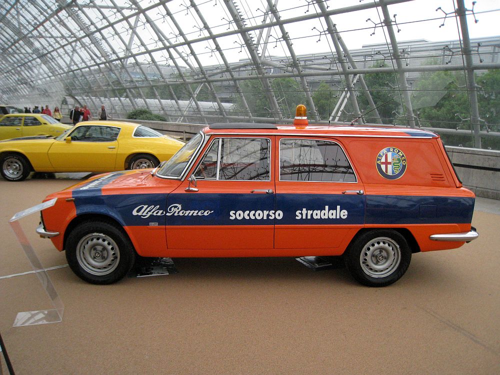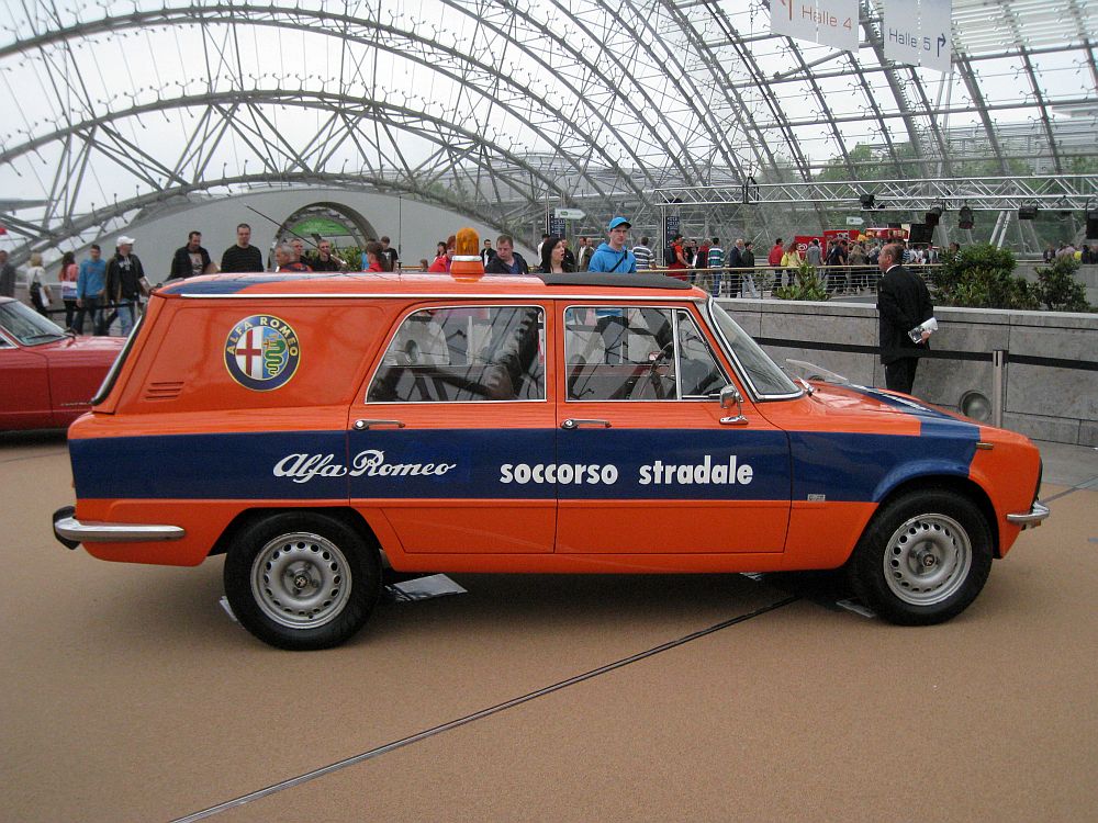 The Alfa Romeo Giulia 1600 Giardinetta Promiscua was a rare station wagon version of the Giulia, produced in small numbers by independent coachbuilders such as Colli and Grazia in the 1960s and early 1970s. It was designed for practicality while retaining the sporty characteristics of the Giulia lineup. Powered by a 1.6-liter inline-four DOHC engine producing around 102 horsepower, it was paired with a five-speed manual transmission. Despite its wagon body style, it maintained the lightweight construction and rear-wheel-drive layout that made the Giulia known for its handling and driving dynamics.