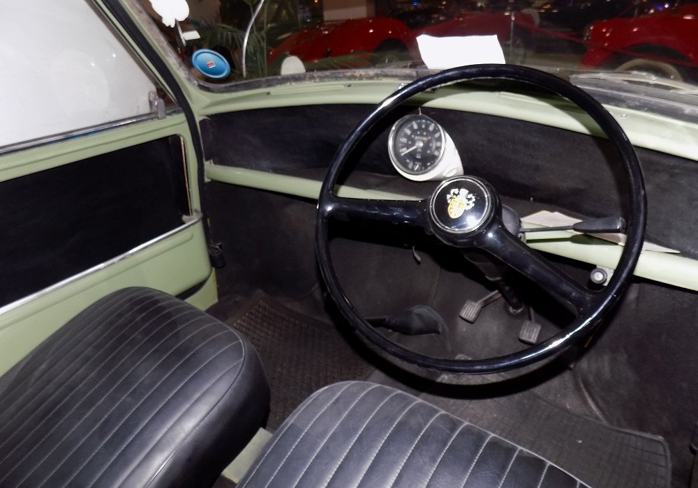 Inside, the cabin was basic and focused on practicality. A centrally mounted speedometer and minimal controls kept the dashboard uncluttered, while vinyl seats provided durability. There was no rear seating, as the space behind the driver and passenger was used for additional storage or tools.