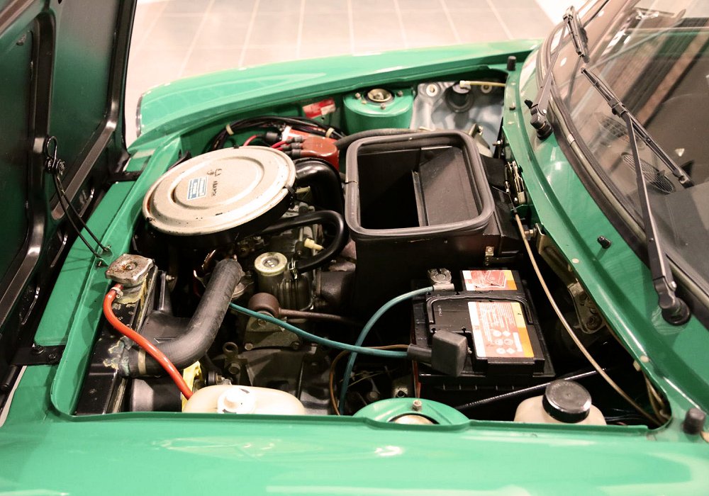 Under the hood, it featured a 1,050 cc inline-four engine tuned to deliver 70 horsepower—a considerable figure for such a compact car weighing under 750 kg. With its twin-choke Weber carburetor, a high-lift camshaft, and free-flow exhaust, the engine revved eagerly and delivered a raspy, aggressive exhaust note that complemented its sporty nature.