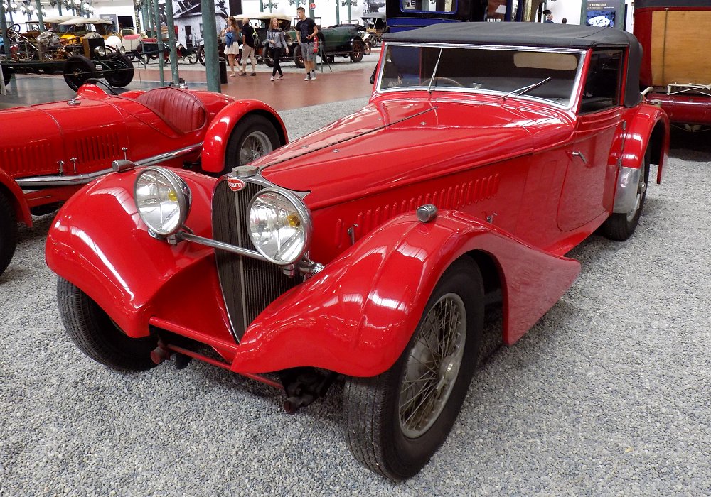 Inside, the craftsmanship continued with luxurious materials and attention to detail. The interior typically featured rich leather upholstery, hand-polished wood trim, and a dashboard fitted with precision Bugatti instrumentation. Comfort and style were equally prioritized, making the car suitable for both spirited drives and leisurely touring.