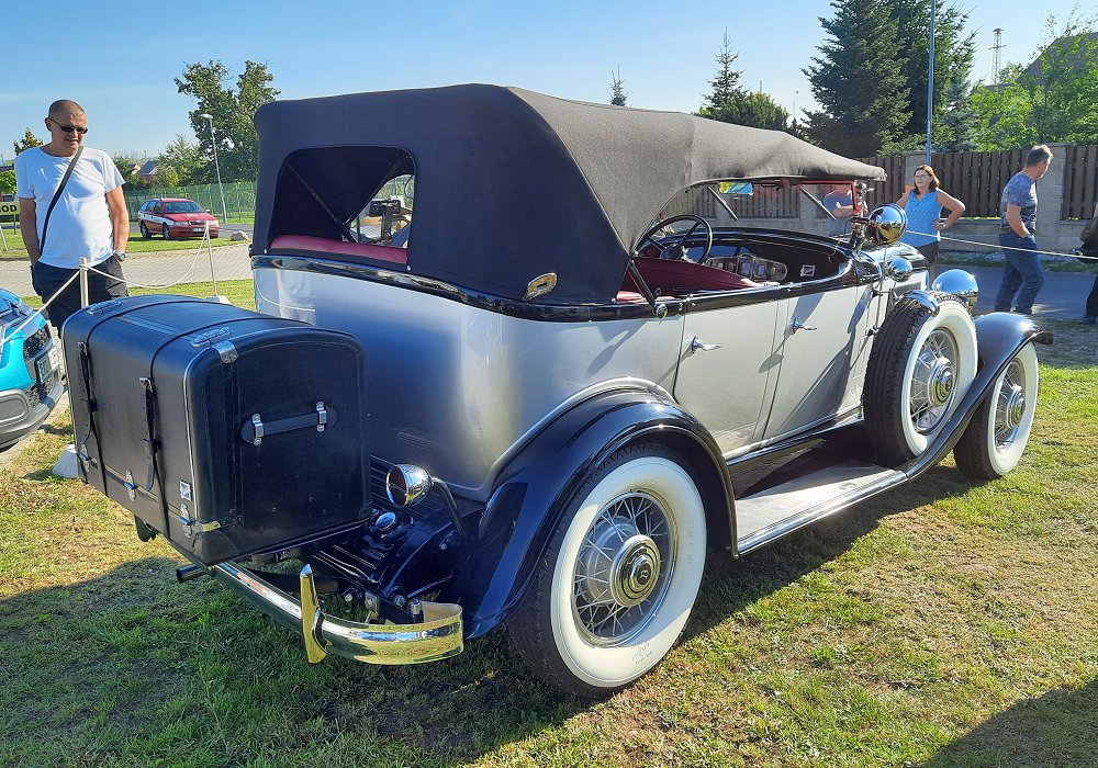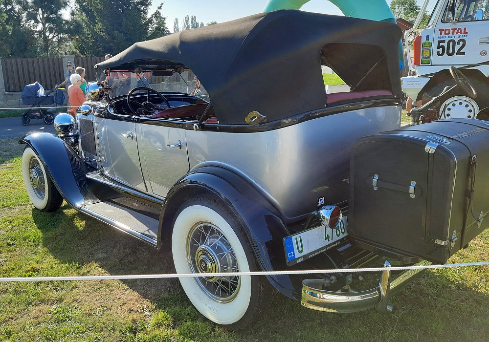 The Phaeton body style offered an open, dual-cowl design with seating for up to five passengers. This layout combined the airy, open-top experience of a touring car with touches of sophistication, such as a secondary windshield for rear passengers. The car’s long wheelbase and elegant proportions gave it a stately presence on the road, while chrome accents, wooden wheels, and a classic vertical grille added to its visual appeal.