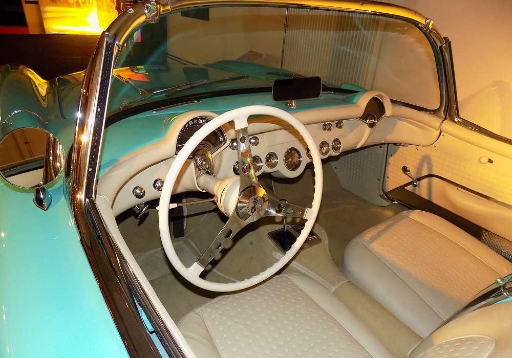 In 1955, Chevrolet finally gave the Corvette the power it needed by replacing the original six-cylinder engine with a 265 cubic inch (4.3-liter) V8. The following year, in 1956, the Corvette was redesigned with more aggressive styling and better practicality, including roll-up windows and improved interior comfort. Along with the restyled body came a wider range of V8 engine choices, including the 220 horsepower version, which offered strong, reliable performance without going to the extremes of the dual-quad or fuel-injected variants.