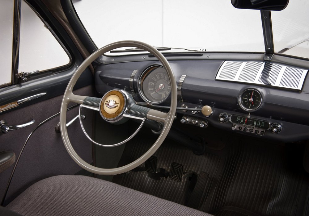 Inside, the Custom Six Tudor Sedan was more comfortably appointed than the lower-trim models. Upholstery options included mohair or broadcloth, with additional chrome trim and woodgrain finishes on the dashboard. The interior was designed to feel more modern and upscale, reflecting buyers’ desires for comfort and style after years of wartime austerity. Features such as a clock, radio, and heater were available, while generous headroom and legroom made the car practical for daily use.