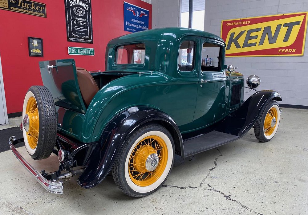Mechanically, the Coupé used a sturdy ladder frame, transverse leaf spring suspension, and mechanical brakes on all four wheels. Though its handling and braking were typical of early 1930s cars, its combination of light weight and V8 power gave it an undeniable performance edge. The interior was modest but comfortable, seating two passengers in the enclosed cabin with simple instrumentation and trim, with Deluxe versions offering more chrome and higher-quality upholstery.