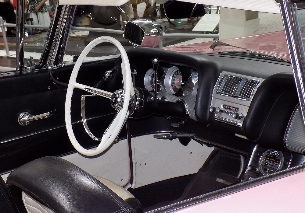 The first-generation Thunderbird (1955–1957) offered a two-seat convertible that immediately set itself apart from European sports cars and Chevrolet’s Corvette. With its long hood, short rear deck, and jet-age details, it emphasized style and prestige over pure performance. Buyers could choose between a power-operated soft top and a removable fiberglass hardtop, the latter becoming famous for its optional “porthole” windows. Inside, the Thunderbird Convertible was a luxury-focused two-seater, offering leather upholstery, chrome-trimmed dashboards, and options such as power windows, power steering, and radios. Engines ranged from the 292 and 312 cubic inch Y-block V8s, producing between 193 and 245 horsepower, paired with manual, overdrive, or Fordomatic transmissions.