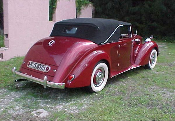 The bodywork of the Black Prince Drophead Coupé was designed and constructed by Britain’s foremost coachbuilders, with Carbodies of Coventry and Airflow Streamlines of Maidenhead among those supplying bodies. Each example was hand-built to order, ensuring that no two were identical. The Drophead Coupé design was a masterpiece of proportion and craftsmanship, combining the stately dignity of a postwar luxury car with the relaxed elegance of an open tourer. The long bonnet and sweeping front wings gave it a sense of restrained power, while the gently curved rear deck and low roofline created a fluid, harmonious silhouette. When lowered, the heavy, lined canvas hood folded neatly behind the seats, preserving the car’s graceful profile. Chrome accents were applied sparingly but tastefully—around the grille, window frames, and headlights—enhancing rather than overwhelming the car’s refined lines.