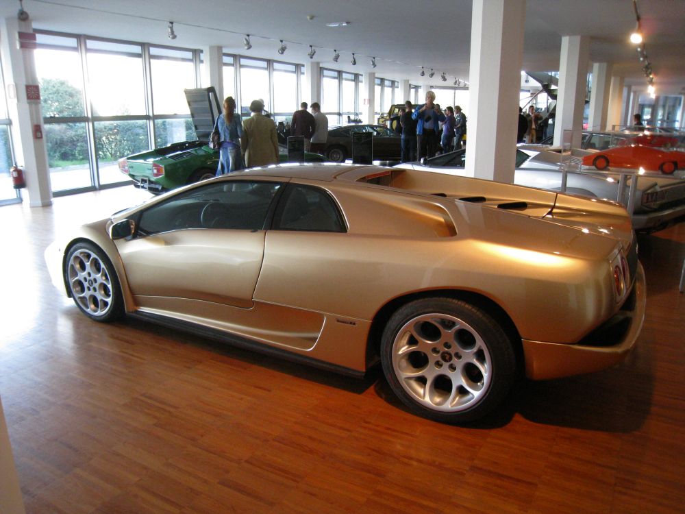 The design of the Diablo VT 6.0 SE was both aggressive and elegant. Donckerwolke’s revisions gave the front end smoother, integrated lines with new air intakes and a more pronounced splitter, while the rear featured a reshaped bumper and larger cooling ducts. The bodywork used extensive carbon-fiber elements, including the engine lid and front and rear fascias. The signature scissor doors remained, but the overall impression was more mature and aerodynamic. The SE edition was offered in just two exclusive colors: Oro Elios (gold metallic) and Marrone Eklipsis (bronze metallic), both chosen to represent the sunrise and sunset—symbolic of the Diablo’s final chapter. Each car was fitted with a numbered plaque inside, signifying its place in the limited production run.