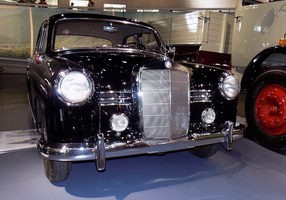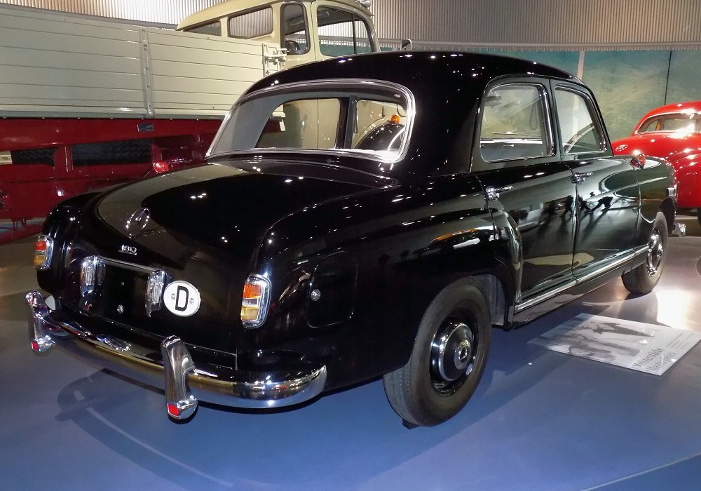 Styling of the Mercedes-Benz 180 was a major departure from earlier designs. The integrated “ponton” body eliminated separate wings, resulting in a smooth, unified shape that looked thoroughly modern in the early 1950s. The upright grille and restrained chrome detailing maintained a clear Mercedes-Benz identity, while the clean body lines gave the car a solid, contemporary presence. This design not only improved aerodynamics but also influenced passenger car styling across Europe during the decade.