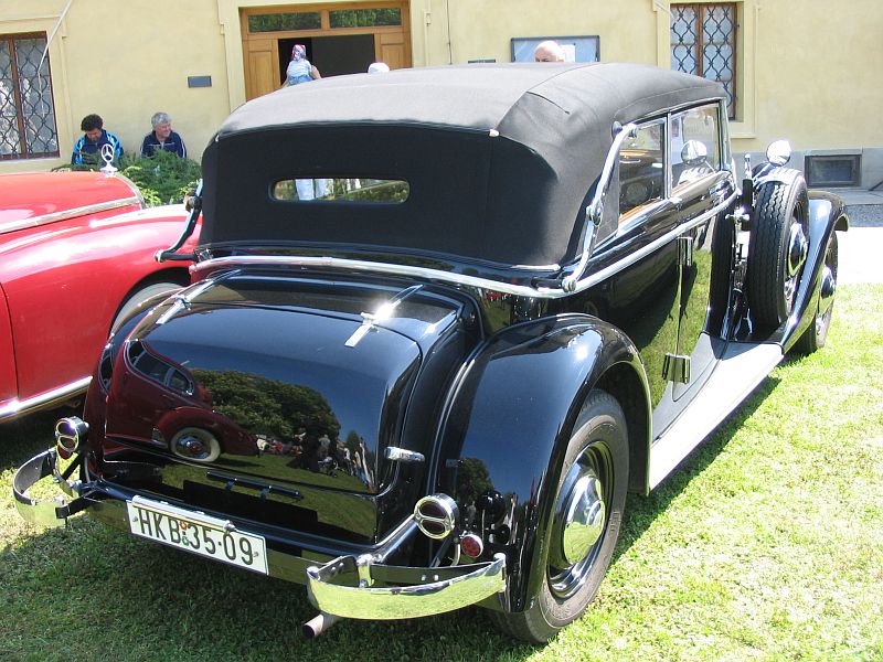 The Sindelfingen-built Cabriolet B bodywork benefitted greatly from the extended chassis. Four full-size doors gave easy access to both front and rear seating, while the longer proportions produced a dignified and balanced silhouette. The car featured a tall upright grille, sweeping front fenders, flowing body sides and a gently sloping rear that housed the folding roof. With the top raised, the Cabriolet B had the stately presence of a formal touring car. With the roof folded neatly toward the rear, it took on the open, welcoming character of a grand four-seat tourer. The design allowed the car to feel equally at home on city boulevards or long scenic drives.