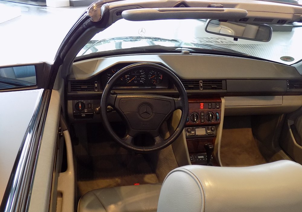 Styling of the 300 CE-24 Cabriolet was elegant and restrained. With the roof raised, the car retained the clean, formal lines of the W124 coupé, while with the roof lowered it presented a long, low and dignified silhouette. Chrome detailing was subtle, and the design avoided flamboyance, reinforcing the car’s role as a luxury convertible rather than a fashion statement.