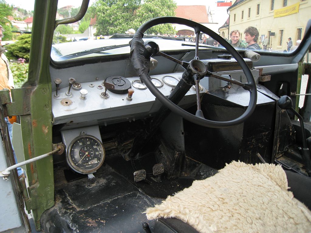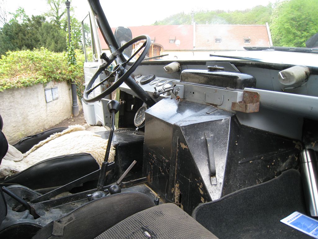 Cab configurations varied over its long production life. Early versions featured open or canvas-covered cabs, while later models offered enclosed metal cabs with improved weather protection and comfort. The driving position was upright and functional, with excellent visibility and simple, durable controls. Comfort was secondary to usability, but for its time the Unimog 411 offered a surprisingly practical working environment.