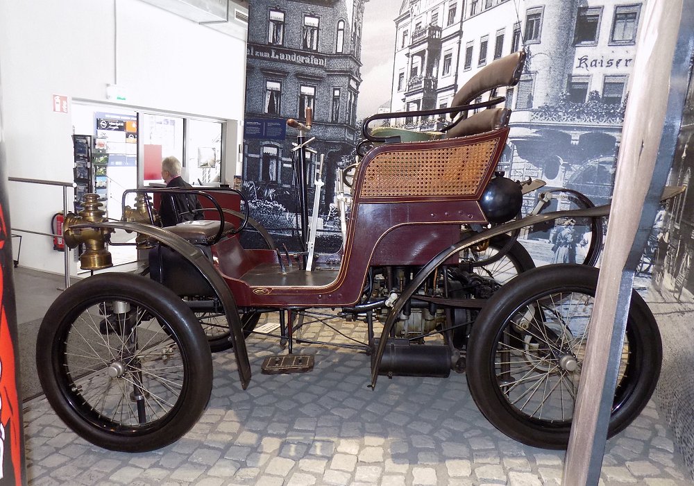 The Modell 2 retained the single-cylinder engine layout, similar to the Modell 1, but offered a slight increase in power, producing around 4 horsepower. This boost allowed the car to achieve a modest increase in top speed, up to approximately 30 km/h (about 19 mph). Like its predecessor, the engine was mounted at the rear and connected to the rear wheels through a simple transmission, while the vehicle still required hand-cranking to start.